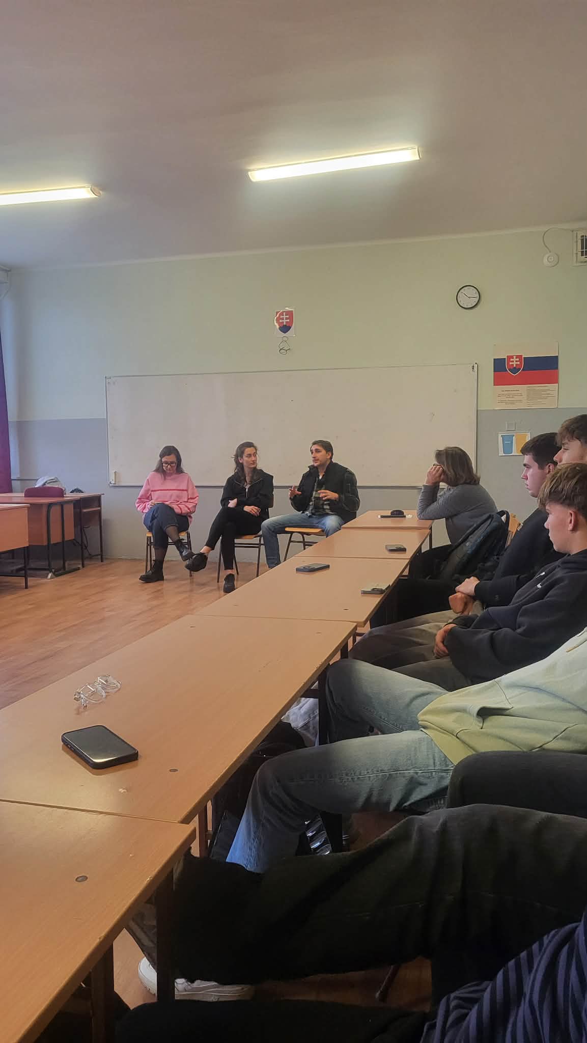 Prostredníctvom classroom play priniesli do našich tried aktuálnu tému duševného zdravia, a tak sa diváci, žiaci I.F a II.F, ocitli v príbehu dvoch tínedžerov, spolužiakov, ktorí sa poznajú dlho, ale zisťujú, že sa vlastne nepoznajú dobre, ba nepoznajú ani sami seba. Šimon a Zoja nám odhalili svoje vnútorné svety, úzkosti i bolesti, aby sme pochopili, že zaoberať sa sebou a svojím vnútrom je správne a riešiť to s odborníkom nie je ani chybou, ani zlyhaním. Každý človek v mladosti prežíva určitú krízu identity. Dospievanie môže vzbudzovať pocit bezradnosti, neistoty z budúcnosti. Takéto momenty dokážu byť rýchle a neškodné, no môžu vyústiť aj do hlbších problémov s duševným zdravím. Je dôležité nebáť sa požiadať o pomoc, keď ju potrebujeme. Nikto predsa nie je sám. O otázkach duševného zdravia, ale i o svojich pocitoch a dojmoch mali možnosť diváci diskutovať po predstavení so samotnými aktérmi a odborníkmi.