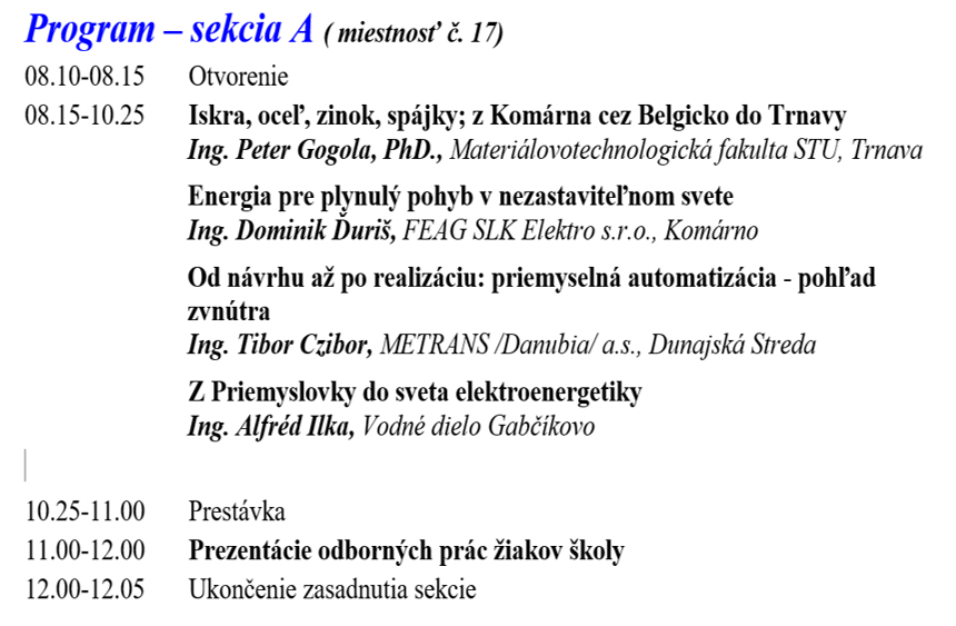 Na 27. februára 2026 sme pripravili pre Vás sériu zaujímavých prednášok v rámci Odborného dňa. Pozvali sme odborníkov, bývalých absolventov našej školy, aby prišli medzi nás a porozprávali o svojej kariére, o tom v akej oblasti pracujú, podnikajú, v čom je ich práca zaujímavá a jedinečná. Po týchto prednáškach sa predstavia aj žiaci SPŠSE- GESZKI, ktorí sa zapojili do Stredoškolskej odbornej činnosti a vytvorili hodnotné súťažné práce.